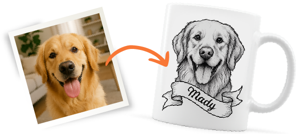 Upload a photo, choose your favorite style, and we’ll create a personalized design for mugs, t-shirts, hoodies, and more.